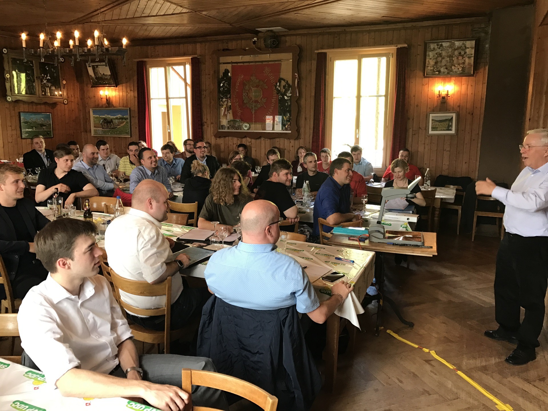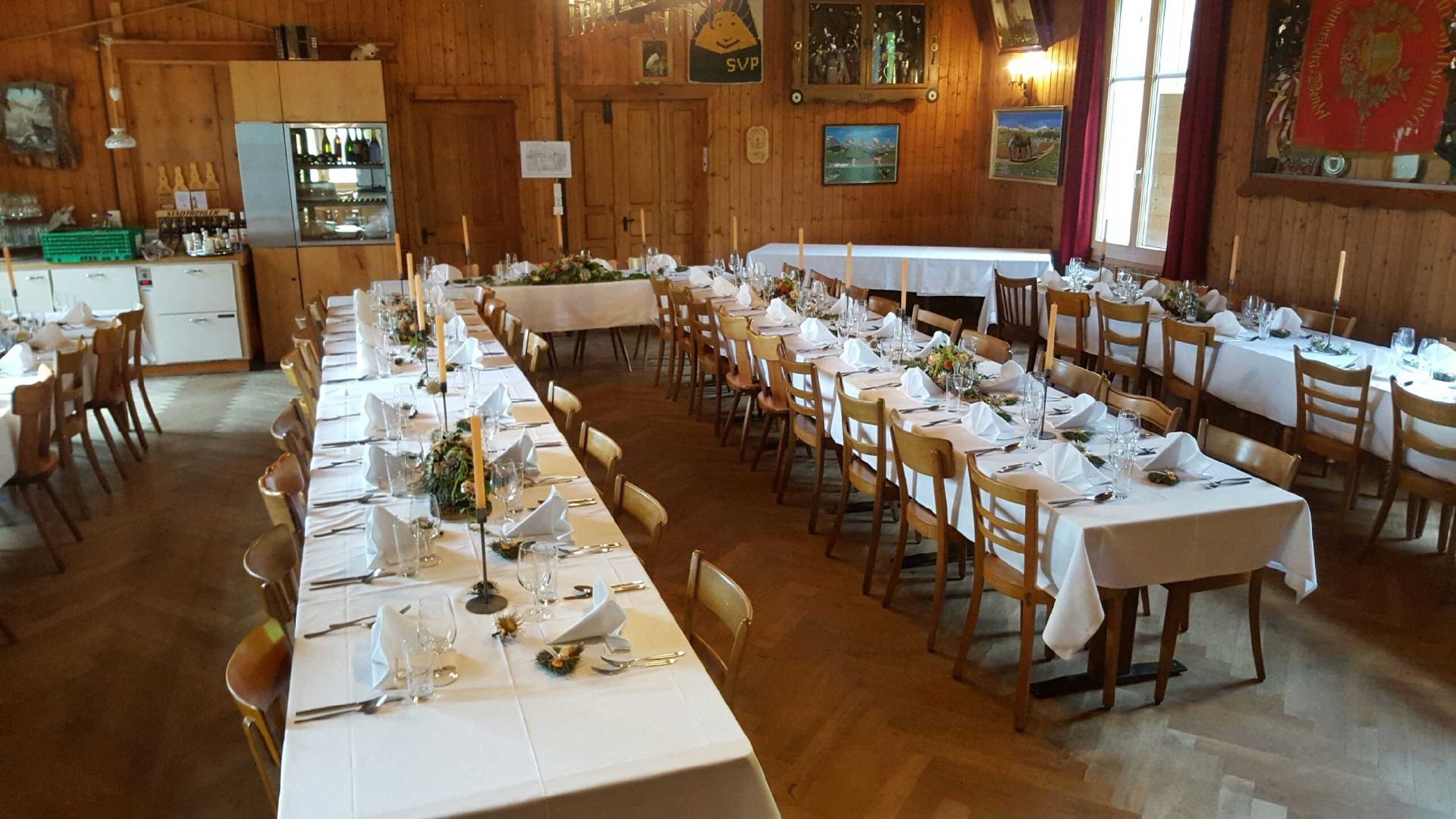 Der altehrwürdige Saal bietet Platz bis zu 80 Personen. Man muss heutzutage in der Ostschweiz ein solches Schmuckstück eines alten Saales suchen. Besonders geeignet ist er für Familienfeiern, Feste, Seminare und Unterhaltungen. Zum Saal gehört eine grosse Bühne mit Vorhang. Ob Musik, Tanz, Vorträge oder die Bühne für Referenten, hier ist man Aug in Aug mit allen im Saal. Der Saal hat eine ganz spezielle Atmosphäre. Erkundigen Sie sich nach den Möglichkeiten, wir gehen individuell auf Ihre Wünsche und Anliegen ein.